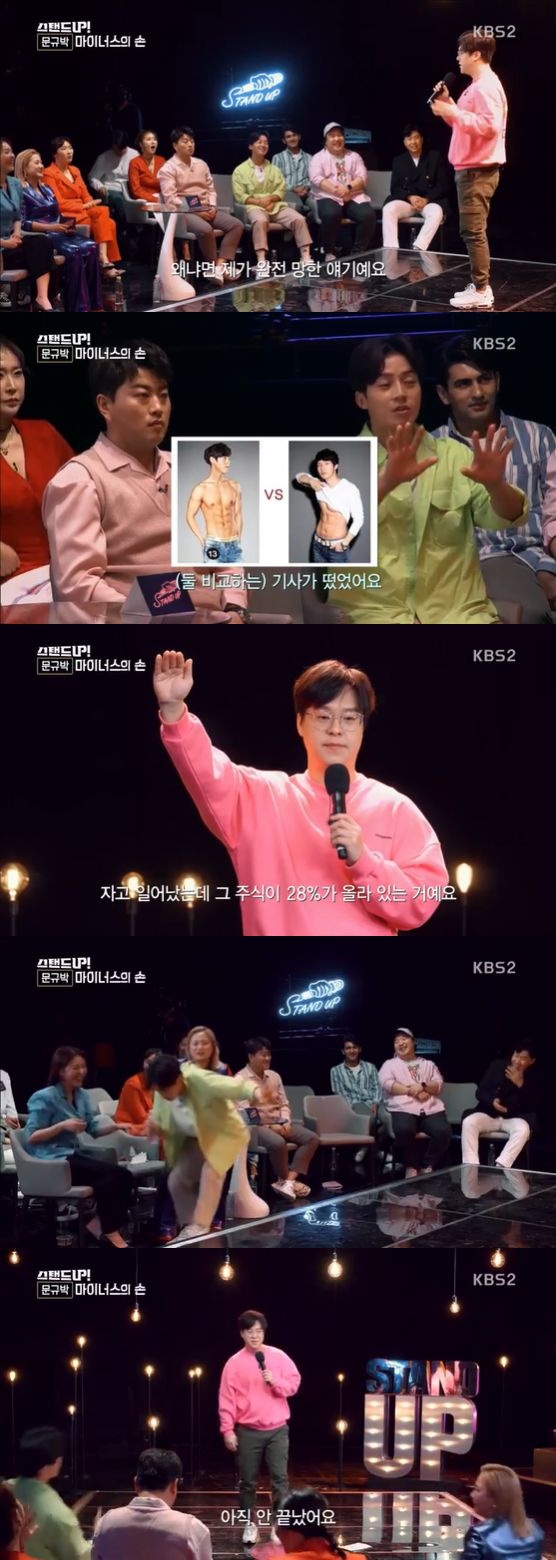 5일 오후 방송된 KBS 2TV 코미디 쇼 '스탠드 업'에서는 개그맨 문규박이 오랜만에 근황을 전했다. 문규박은 "오랜만에 근황을 전하는데 그간 뭐 하고 살았는지 궁금하시냐"라며 운을 뗐다.
