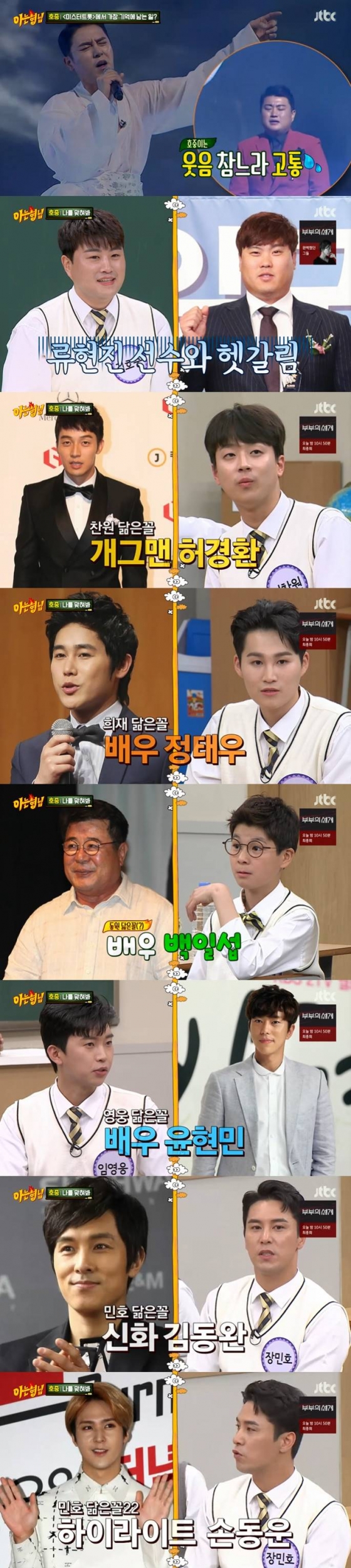 김준현, 정찬우와 닮은꼴인 김호중은 "예전에 녹색지대 곽창선 형을 모시고 중국 공연을 가던 중에 면세점을 간 적이 있는데 면세점 직원들이 '너무 좋아요'라고 하더라. 사인을 하면서도 의아했다. 알고보니 류현진 선수인 줄 알았더라"고 밝혔다. 이어 영탁은 윤형빈, 이찬원은 허경환, 이지훈, 김희재는 정태우, 백일섭, 임영웅은 이승기, 윤현민, 장민호는 신화 김동완, 하이라이트 손동운 닮은꼴로 언급돼 눈길을 끌었다.