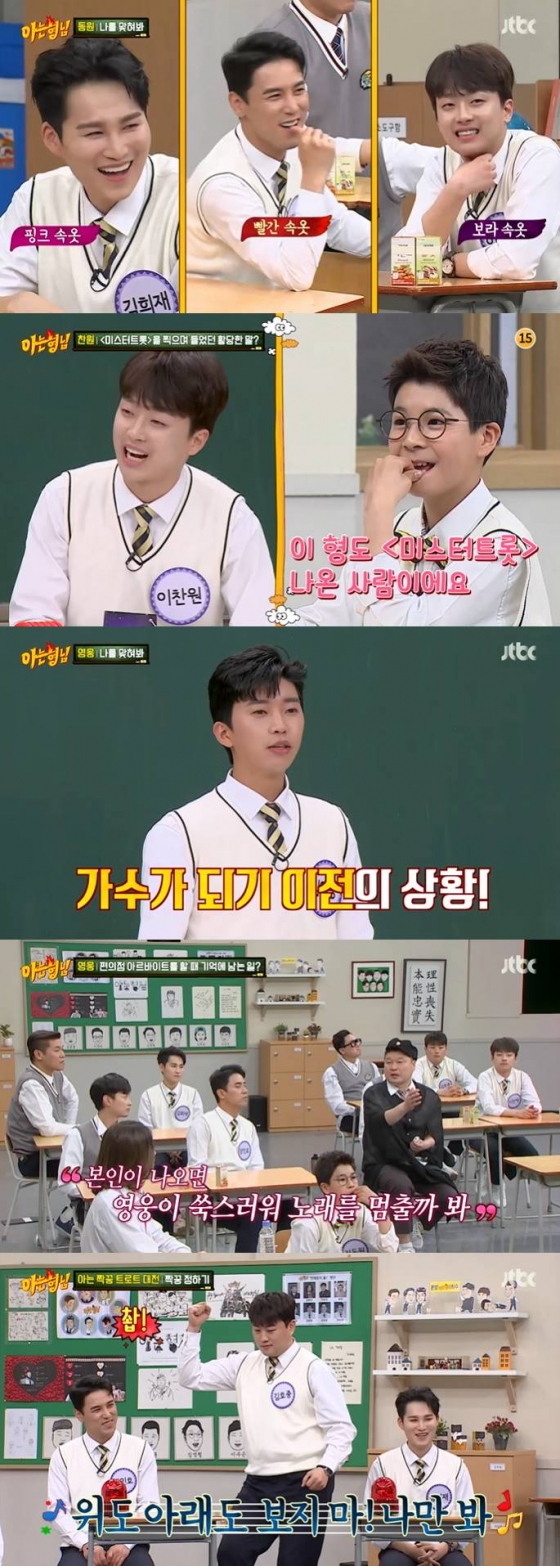 16일 오후 방송된 JTBC 예능프로그램 '아는형님'에서는 '미스터트롯' 톱7 임영웅, 영탁, 김호중, 이찬원, 정동원, 장민호, 김희재가 출연했다. '미스터트롯' 특집은 지난 9일에 이어 16일과 23일까지 총 3주에 걸쳐 방송된다.