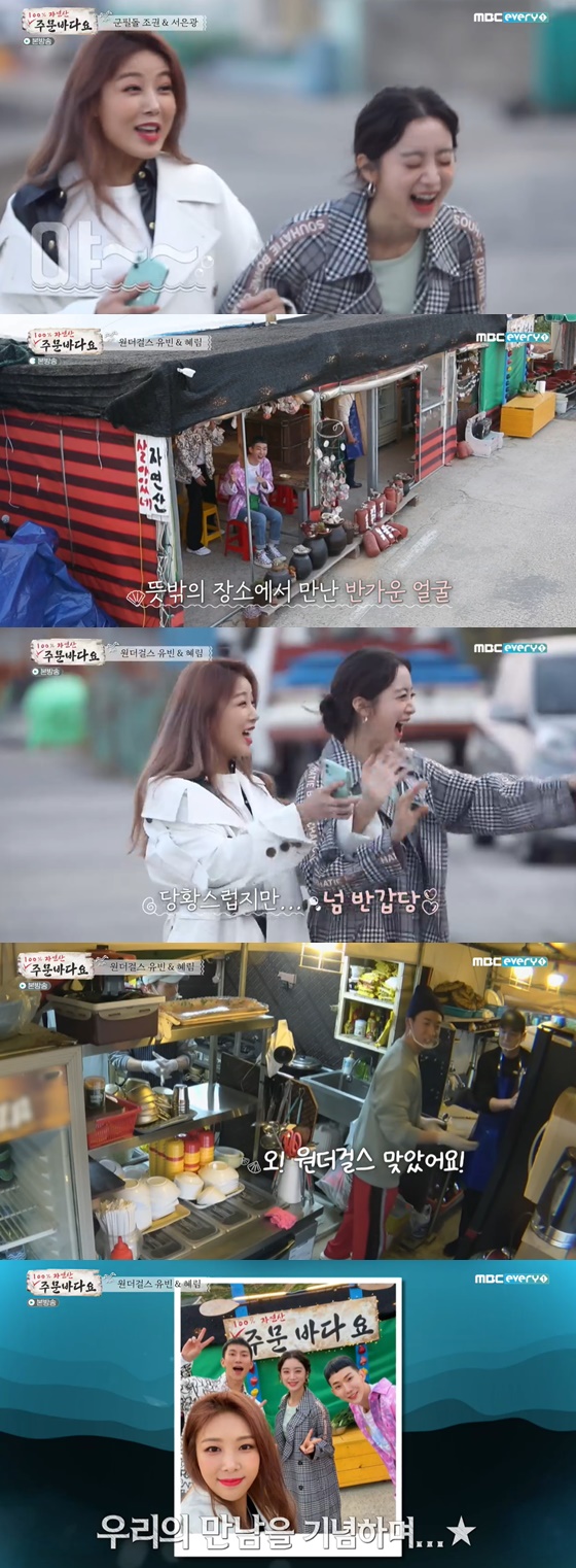 18일 오후 방송된 MBC에브리원 예능프로그램 '주문 바다요'에서 두 번째 손님으로 원더걸스 멤버 혜림과 유빈이 출연했다.