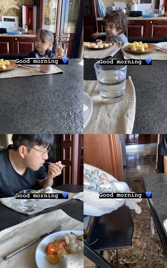 공개된 사진 속에는 훌쩍 자란 나은 양과 건후 군의 아침 일상이 담겼다. 아침을 먹는 건후와 나은이의 사랑스러운 모습이 많은 이모 삼촌들의 훈훈함을 자아냈다. 또 영상 말미에 살짝 등장하는 막내 진우 군의 모습에 많은 이들의 관심이 집중됐다.