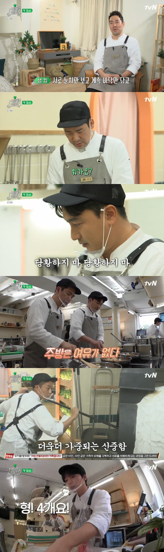 샘킴은 메인 셰프로, 안정환은 수셰프로 호흡을 맞추게 됐다. 샘킴은 안정환에게 지시를 하며 파스타를 만들어 갔다.