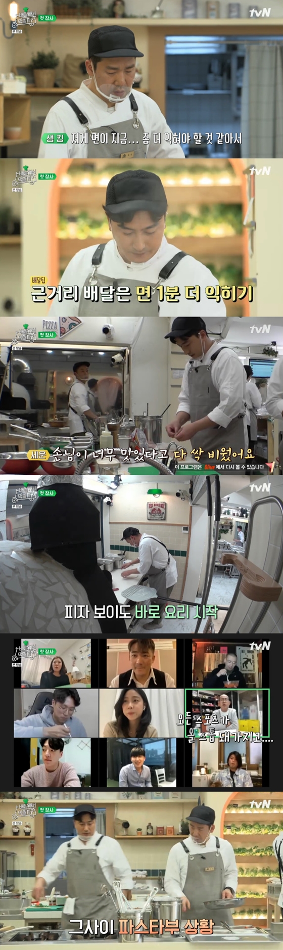 첫 장사에 나선 샘킴, 안정환, 윤두준, 정세운은 각자 할 일을 분담해 장사에 나섰다. 샘킴과 안정환은 파스타를 비롯한 메인 요리를 담당했고, 윤두준은 화덕 피자, 정세운은 주문과 포장을 맡았다.