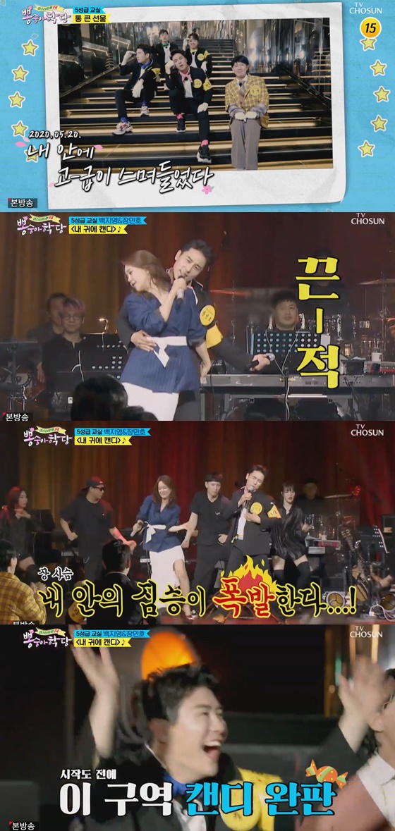 '뽕숭아학당'에서 장민호가 백지영과 함께 '내 귀에 캔디'로 호흡을 맞췄다.