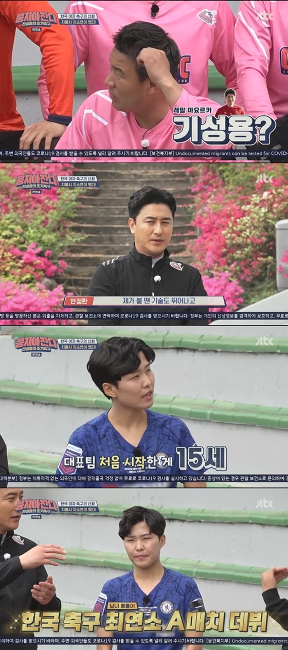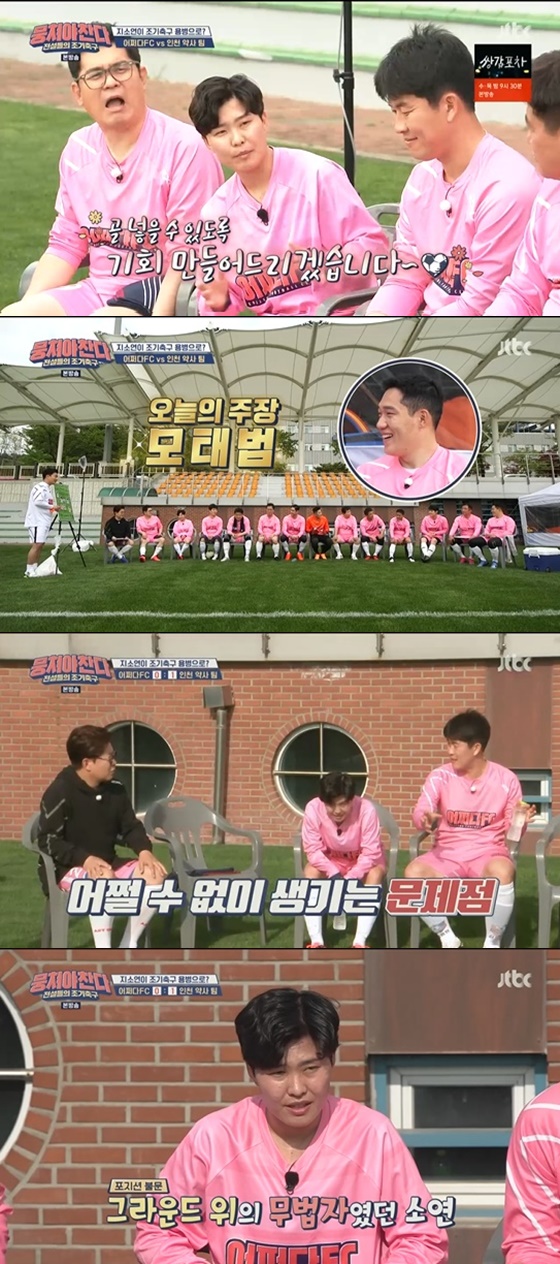 24일 오후 방송된 JTBC 예능프로그램 '뭉쳐야 찬다'에서는 '지메시' 지소연이 일일 코치 겸 용병으로 출격했다.