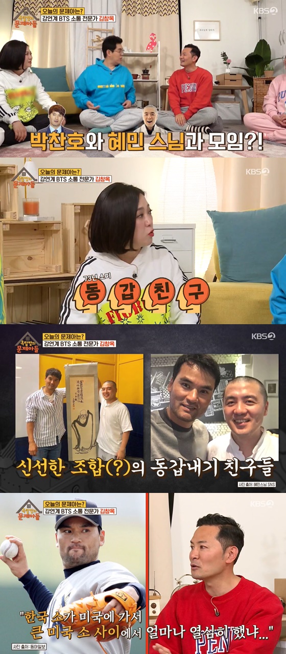 이날 김창옥 교수는 "박찬호, 혜민 스님과 동갑내기라 모임을 하고 있다"며 "73년생이 소띠인데 그래서 모임 이름이 '한우회'다"라고 밝혔다.
