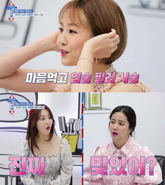 첫 번째로는 100여 차례 넘게 성형수술을 감행한 중국의 SNS 스타의 이야기가 소개됐다. 성형 부작용에 시달리면서도 매번 변화하는 트렌드에 맞춰 수술과 시술을 멈추지 않아 세 MC의 안타까움을 자아냈다.