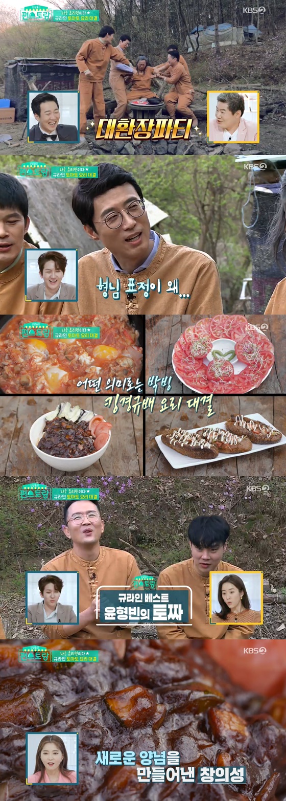 이어 '규라인'을 한데 모은 이경규는 "지금부터 '토마토 요리 대결'을 펼치겠다"고 말했고 이에 윤형빈은 토마토를 이용한 짜장면을, 유재환은 토마토 핫도그를 요리했다.