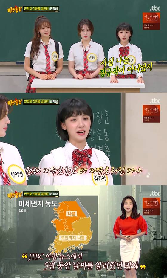 6일 방송된 JTBC 예능프로그램 '아는형님'에서는 과거는 뉴스에서, 현재는 예능에서 활약하고 있는 안현모, 신아영, 김민아가 전학생으로 출연했다.