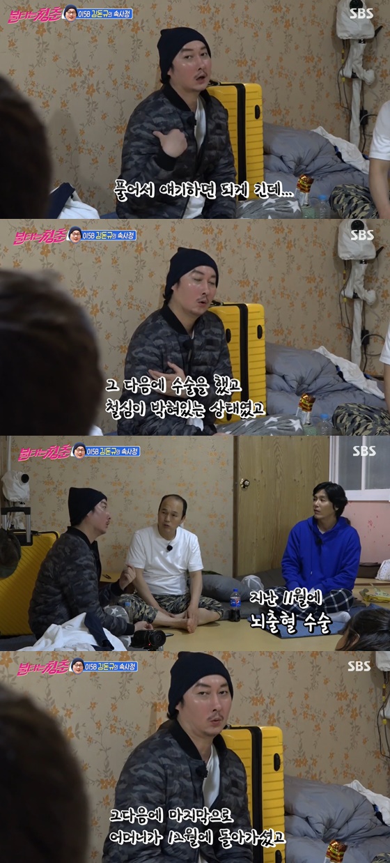 이날 김돈규는 최근 7개월간 겪은 불행한 이야기를 털어놨다. 그는 "어깨가 다친 날 아버지가 돌아가셨고, 그날 수술을 못 받고 3일장을 반 깁스를 하고 치렀고 그다음 날 수술을 했다. 지주막하출혈(뇌출혈)은 11월 말에 수술을 했다"라고 말해 놀라움을 자아냈다.