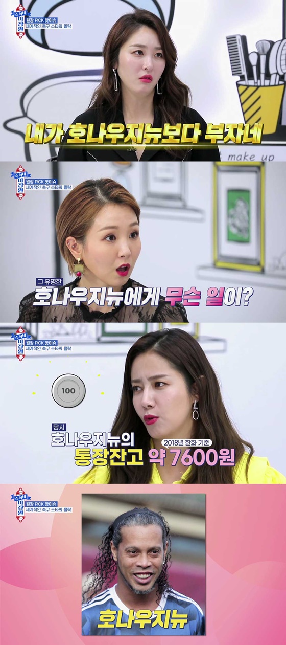 방송인 신아영이 축구 스타 호나우지뉴의 안타까운 사연에 혀를 내둘렀다.