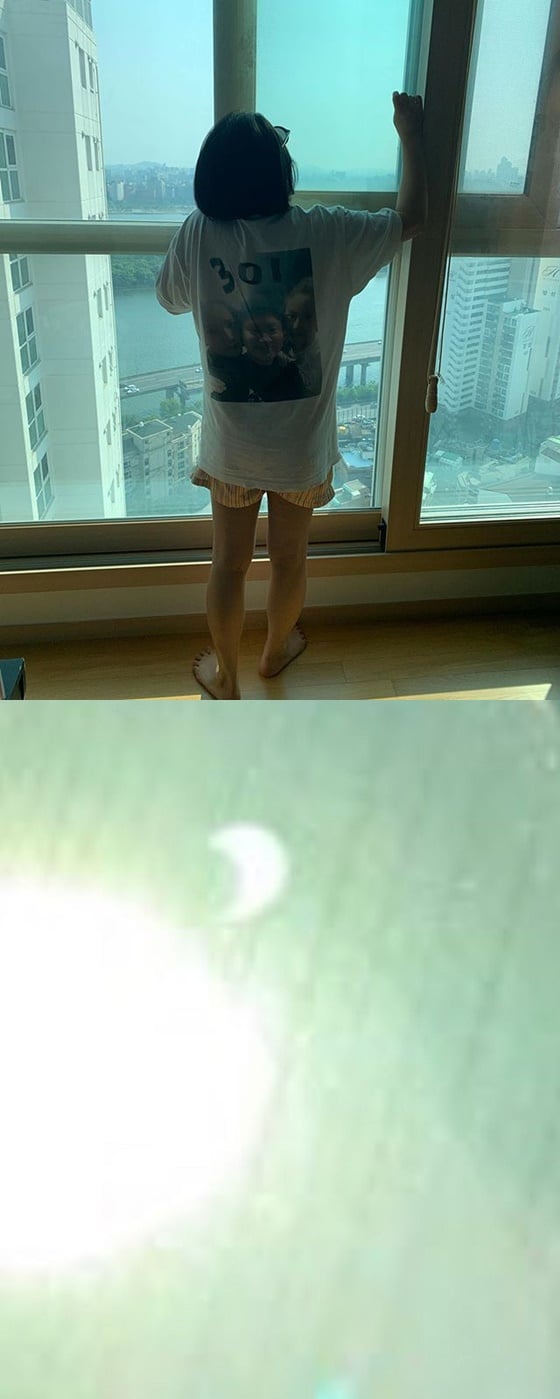 김신영은 21일 자신의 인스타그램에 "#부분일식2020 #봤다 #찍었다 내 눈~"이라는 글과 함께 두 장의 사진을 게재했다.