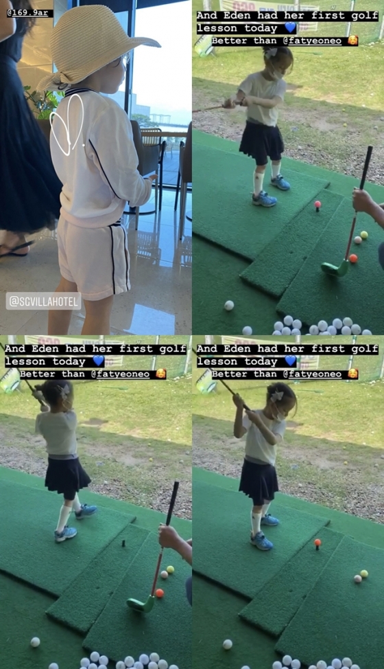 또 영상 속에는 생애 첫 골프 레슨을 받는 나은이의 모습이 담겼다. 나은이는 작지만 다부진 손으로 진지하게 수업에 임하고 있다.