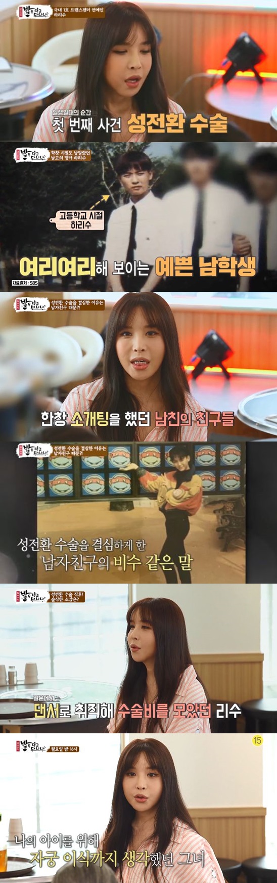 학창 시절 남자들에게 인기가 많았다는 하리수는 "동창 중 한 명과 1년 동안 사귀었는데, 소개팅 일로 심하게 감정 싸움을 했다"며 "그 친구가 '괜찮아. 너 어차피 여자도 아니잖아'라고 하더라. 그 얘기가 뒤통수를 딱 때렸다. '나의 몸을 바꾸어야겠다' 싶어서 성전환 수술을 결심했다"고 전했다.