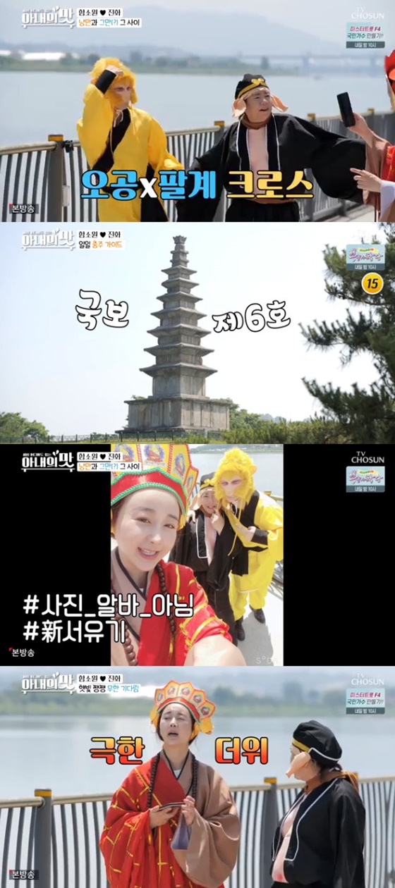 세 사람이 먼저 도착한 곳은 국보 제6호인 탑평리 칠층 석탑이었다. 석탑의 분위기에 압도당한 세 사람은 감탄했다. 이어 함소원, 진화, 마마는 각각 삼장법사, 손오공, 저팔계 의상으로 갈아입어 웃음을 자아냈다.