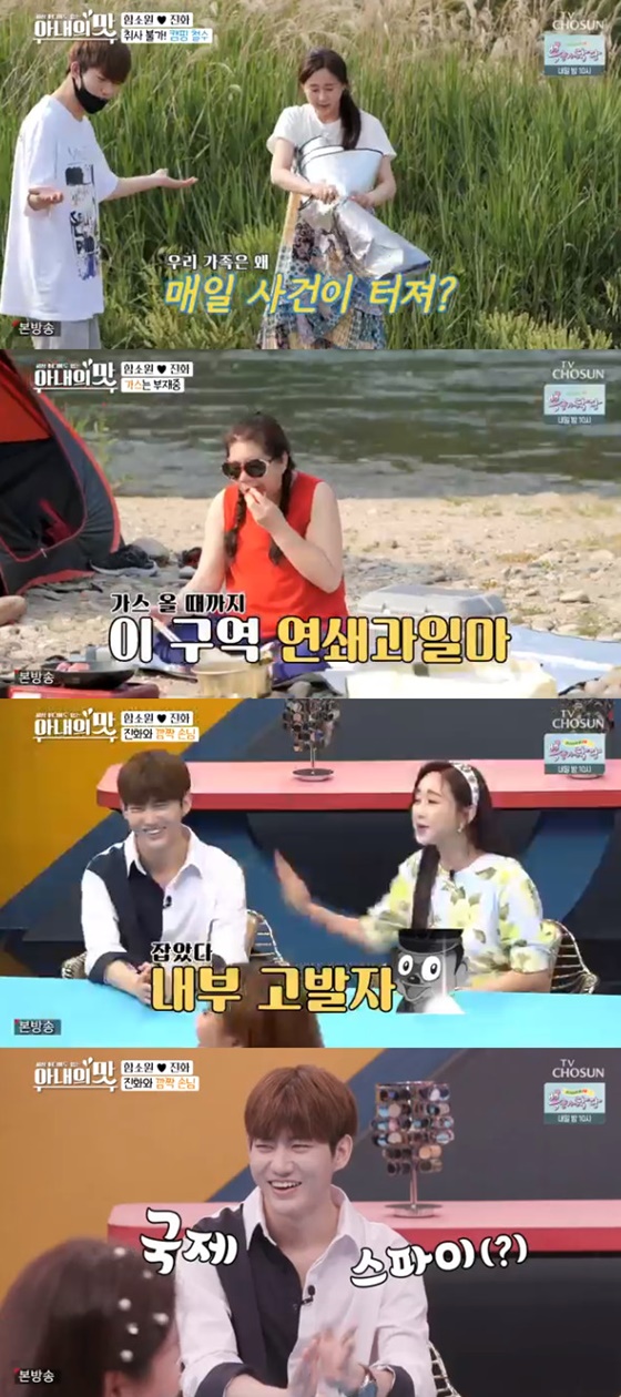 함소원은 "억울한 점이 취사가 6월 1일부터 금지가 됐다. 제가 일주일 뒤인 9일에 갔다"며 "남편이 그분들을 데리고 나타났으니 얼마나 놀랐겠냐"고 해 웃음을 자아냈다.