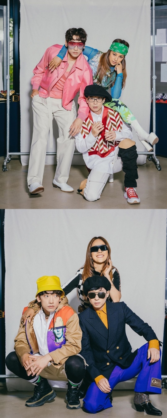 공개된 사진 속에는 스타일리스트 한혜연의 스타일링으로 새롭게 태어난 싹쓰리 멤버 유재석, 이효리, 비의 모습이 담겨있다. 그들은 개성 넘치는 컬러의 의상과 악세서리를 찰떡같이 소화해 눈길을 끌었다.