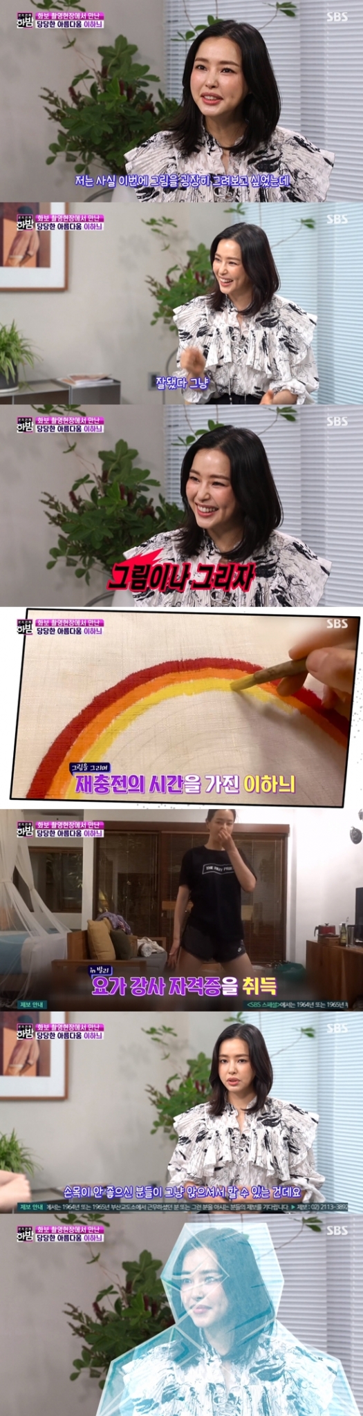 이하늬는 "그림을 그리면서 힐링이 된다"라고 말했고 지난해 발리에서 한 달 동안 머물며 요가 강사 자격증을 땄다고 밝혔다.