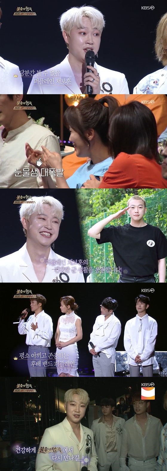 이에 아나운서 판정단과 모든 가수들이 아쉬움을 토로하는 한편 건강한 군 생활을 응원했다. 결국 몽니와의 대결에서는 퍼플레인이 패배하며 승리를 내어줬지만 채보훈은 이후 군 입대 근황을 전하며 훈훈한 후일담을 전했다.
