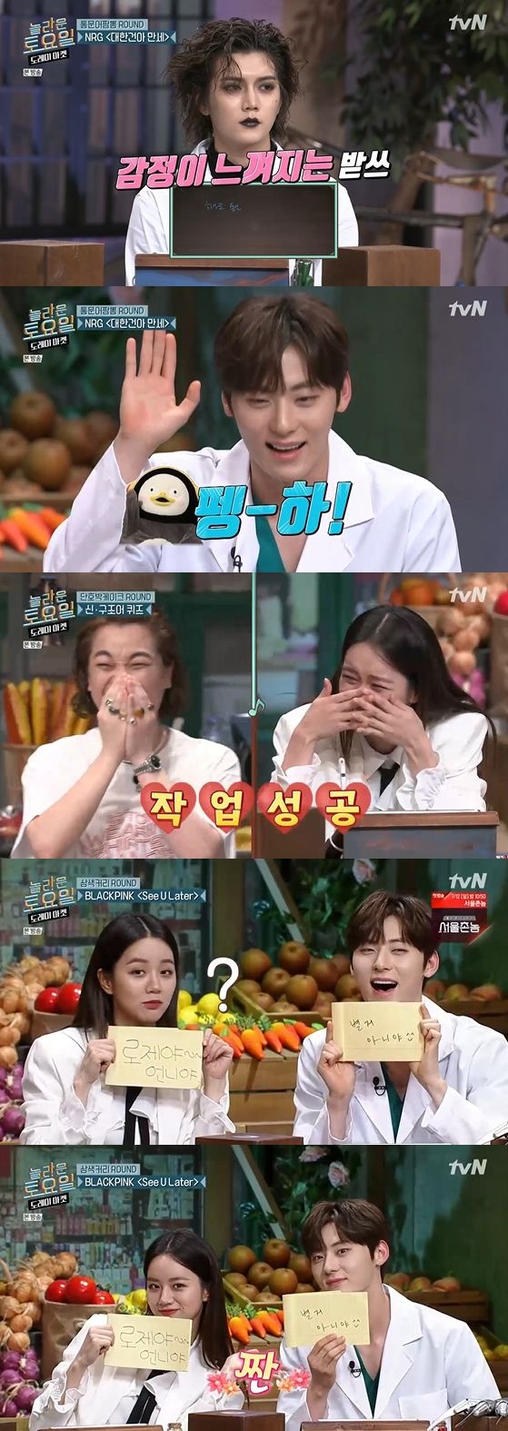 이어 민현은 펭수를 따라 하며 '펭하'를 외쳐 놀라운 싱크로율을 보였다. 이날 첫 번째 받아쓰기 곡인 NRG의 '대한건아 만세'에 이어 블랙핑크의 곡까지 멤버들은 좌충우돌 미션을 펼치며 깨알 웃음을 선사했다.