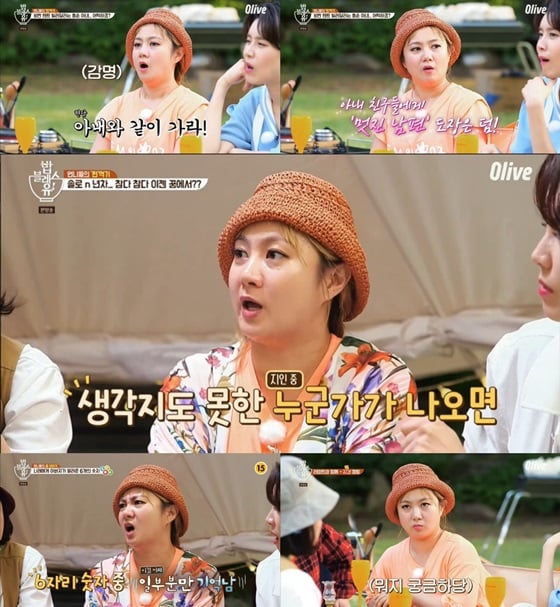 박나래는 지난 9일 방송된 올리브 예능프로그램 '밥블레스유2'에서 송은이, 김숙, 장도연과 함께 배우 라미란을 인생 언니이자 캠핑 고수로 초대해 캠핑 '먹방'을 즐겼다.