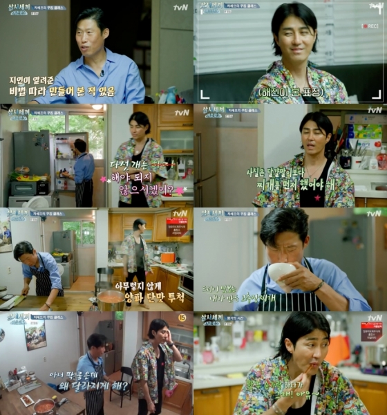그러나 결국 차승원은 간섭을 시작했다. 차승원은 "계란말이보다 찌개를 먼저 했어야 해. 그리고 이미 채소를 갖고 왔잖아. 그러니까 다 썰어놓고 한 번에 하는 거지"라며 잔소리를 해댔다. 유해진이 계란말이를 하는 동안 고추장찌개에 양파를 썰어 넣는 등 요리에도 손을 댔다.