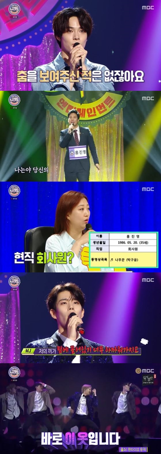 이에 회사원 홍진영은 "필기류 회사에서 과장으로 하고 있는데 만약 트로트 가수로 활동하게 된다면 퇴사할 것"이라며 열정을 보였고 이특은 이에 연속 따봉을 올렸다. 이어 김범수의 '보고 싶다'를 열창했고 대기자들을 포함한 모든 평가단이 극찬했다.