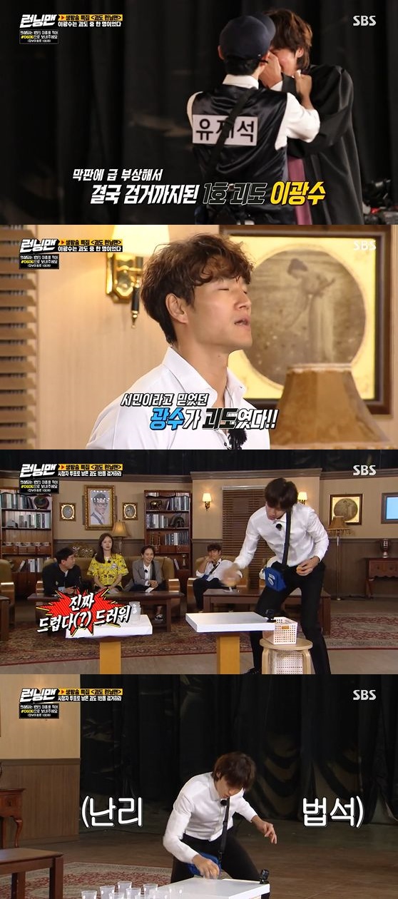 이광수가 일찍이 괴도의 정체가 드러나며 허당 웃음을 선사했다.
