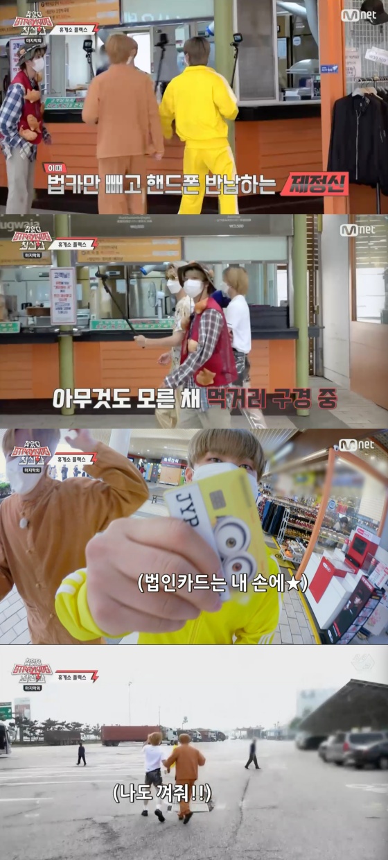 필릭스가 법인카드를 휴대폰 케이스로 보관하는 걸 본 창빈은 "휴대전화 잃어버려서 전화 한 통만"이라며 창빈의 휴대전화를 받았다. 카드를 꺼낸 창빈과 리노는 카드를 들고 뛰기 시작했다. 현진은 둘을 쫓아가며 "법카 훔쳤지? 나도 같이"라며 합류했다.