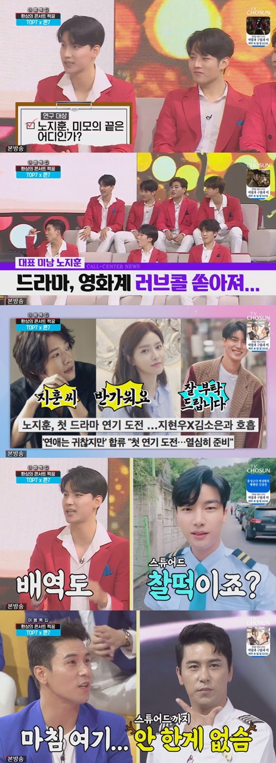 16일 오후 방송된 TV조선 예능 프로그램 '신청곡을 불러드립니다 - 사랑의 콜센타'(이하 '사랑의 콜센타')는 '환상의 콘서트 짝궁' 여름 특집으로 꾸려진 가운데, '미스터트롯' 톱7과 류지광, 강태관, 나태주, 노지훈, 김중연, 황윤성, 남승민으로 이루어진 '콘7'이 출연했다.
