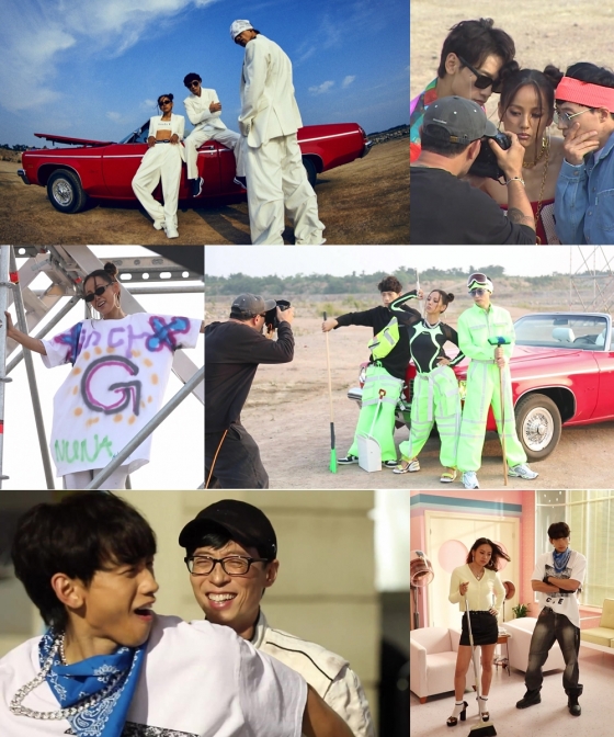 싹쓰리는 LA 사막을 떠오르게 만드는 앨범 재킷 촬영 현장에서 붉은 색 오픈카와 네온컬러, 멤버들이 직접 만든 D.I.Y 패션으로 90년대 무드를 완벽히 재현해 독보적인 존재감을 드러냈다.
