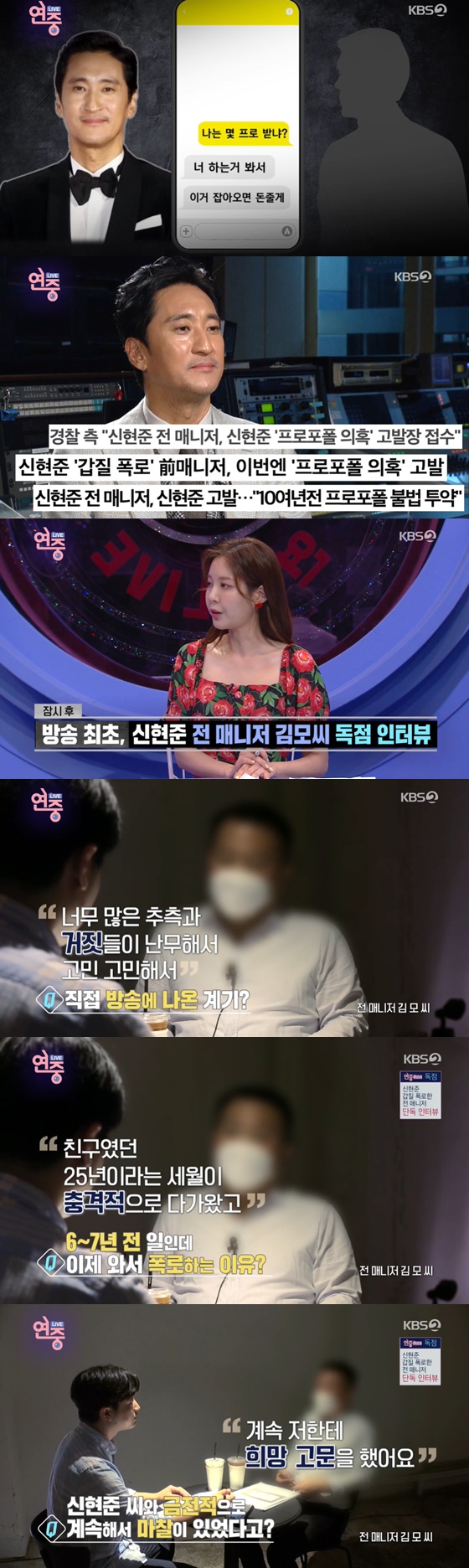 17일 오후 방송된 KBS 2TV 예능프로그램 '연중 라이브'에서는 최근 '매니저 갑질' 의혹으로 갈등을 겪고 있는 신현준의 전 매니저와의 단독 인터뷰가 공개됐다.
