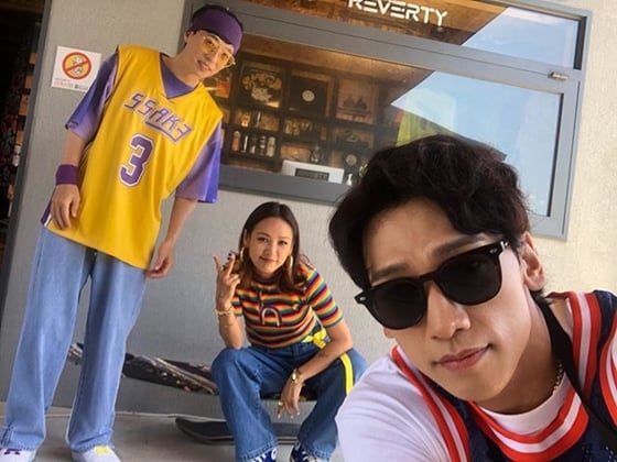 공개된 사진 속에는 유재석, 비와 함께 사진을 찍는 비의 모습이 담겼다. 세 명의 밝은 미소와 케미가 보는 이들의 미소를 자아낸다.