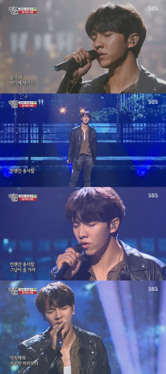 '금지된 사랑'을 열창하기 전 이승기는 "집에 가서 소금물 가글 세 번 하고 말 아무것도 안하고 잤다. 아침에 정말 간만에 생강차를 먹고 왔다"라고 말했다. 즉, '금지된 사랑' 열창을 위해 오랜만에 만반의 준비를 했다는 것.