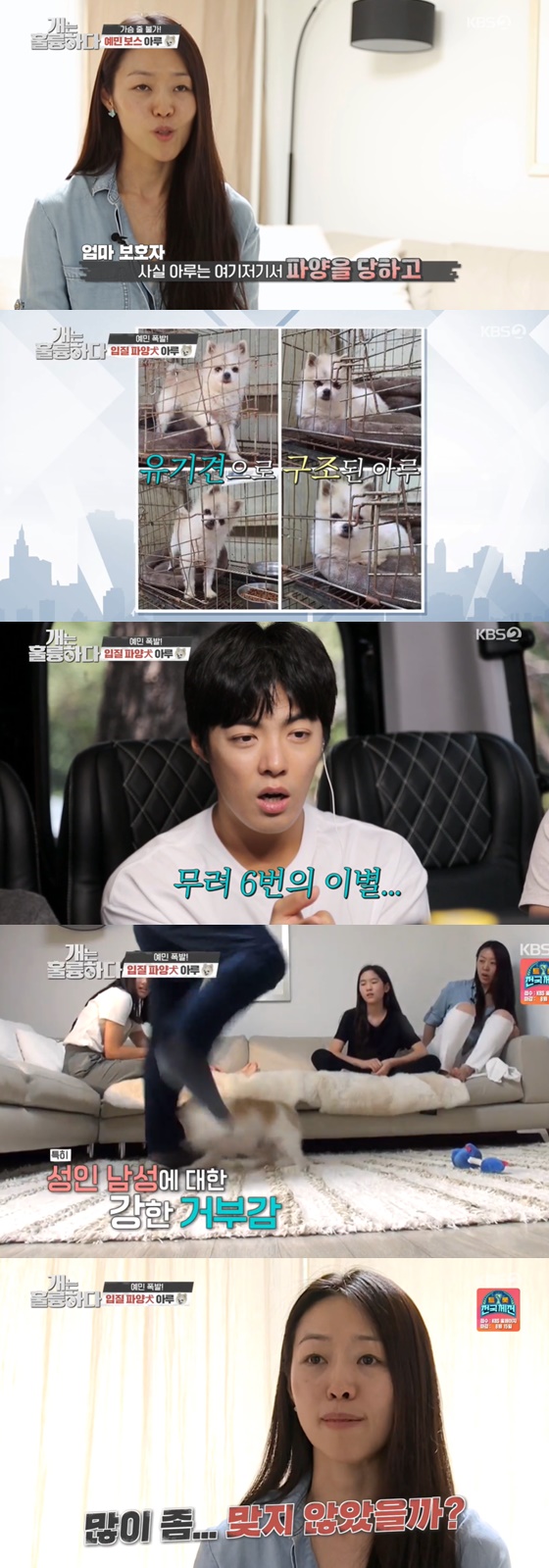 27일 오후 방송된 KBS 2TV 예능 프로그램 '개는 훌륭하다'에서는 유기견으로 구조됐지만 입질이 심해 6번 파양된 '아루'의 이야기가 그려졌다.
