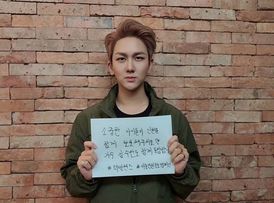 사진 속에는 김수찬이 "소중한 아이들의 인권을 함께 보호해 주세요"라고 쓴 종이를 들고 찍은 모습이 담겨있다.
