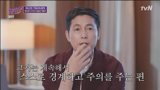 두 번째 자기님으로 출연한 건 배우 정우성이었다. 정우성은 "코로나19 때문에 콘셉트가 변형이 됐다. '유퀴즈' 초반에 길을 걷다가 (시민들과) 우연히 만나서 '정말 따뜻하고 세상에는 특별한 이야기가 많구나'라고 공유할 수 있었다. 그때 너무 재밌게 봤었다"라고 말했다. 그러면서 '요즘 별로냐'는 유재석의 물음에 "코로나19로 인해서 프로그램이 안타깝다"라고 답해 웃음을 안겼다. 또한 '잘생겼다'는 말에 대해 "오랫동안 속마음은 언제나 똑같고 감사하다. 그런데 '네 알아요', '짜릿해', '늘 새로워'라고 농담을 하니까 재밌게 봐주셔서 편하게 넘어간 것 같다"라고 너스레를 떨었다.