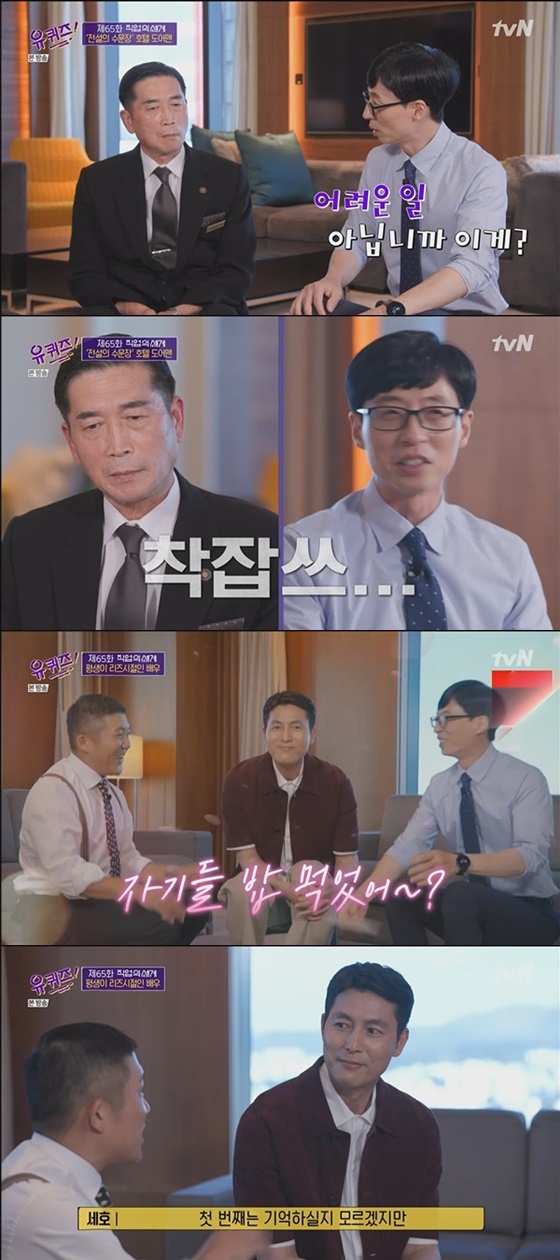 29일 오후 방송된 tvN 예능프로그램 '유 퀴즈 온더 블럭(이하 유퀴즈)'에서는 '직업의 세계' 특집으로 꾸며졌다. 영화배우 정우성, 호텔 도어맨 권문현, 디지털 장의사 김호진, 웹툰 작가 조석 등이 출연했다.