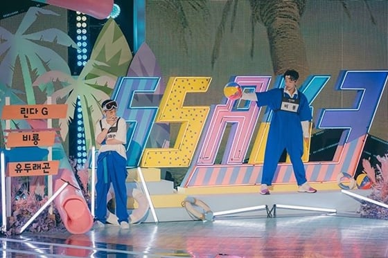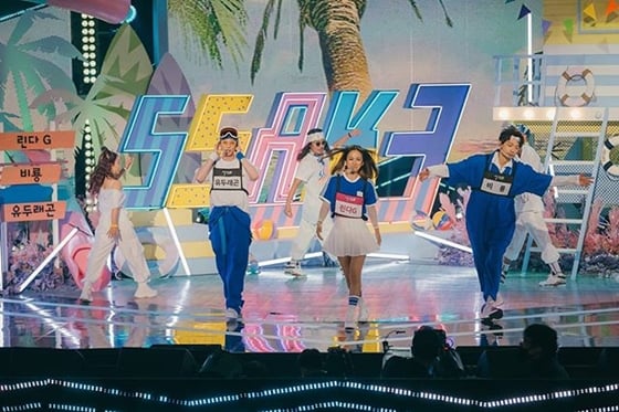 공개된 사진 속에는 진지한 모습으로 리허설에 임하는 그룹 싹쓰리의 모습이 담겼다. 유두래곤(유재석), 린다G(이효리), 비룡(비)의 훈훈한 케미가 엿보여 눈길을 끈다.