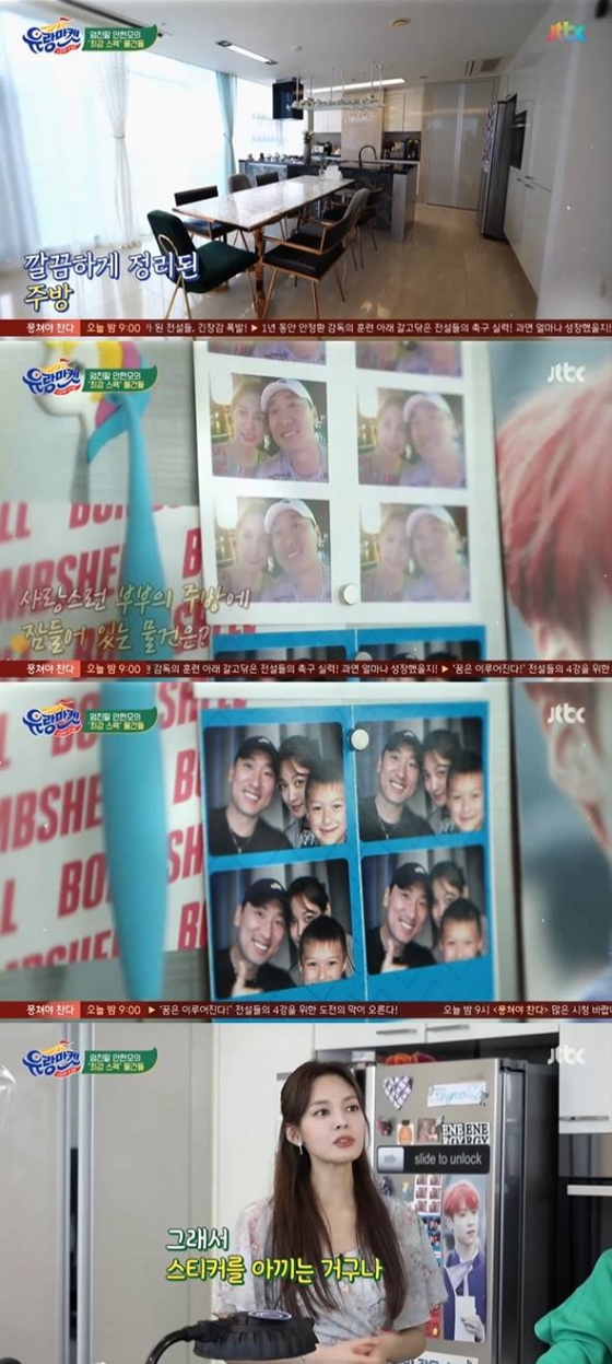 이날 안현모는 깔끔하게 정리된 주방을 공개했다. 대리석 식탁 등이 놓여 있는 가운데 냉장고에 붙은 사진들이 눈길을 끌었다.