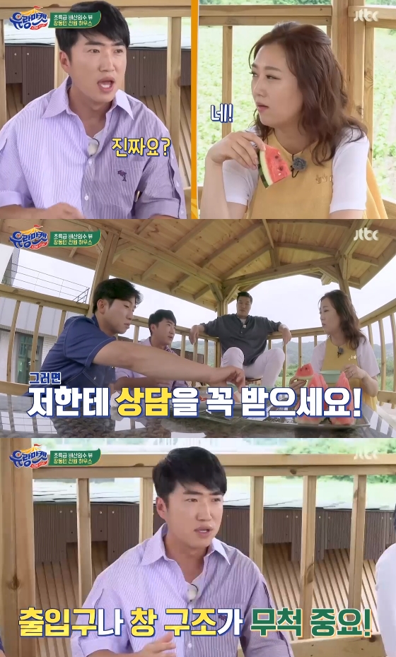 장동민은 "그럼 저한테 상담을 꼭 받아라. 처음부터 알았으면 좋았을 것들이 있다"며 조언했다. 그는 "시골에서는 벌레가 들어오지 않게 하기 위해 방충망을 두 겹으로 설치하는 등 설계 단계부터 집 구조를 고려해야 한다"고 전했다.