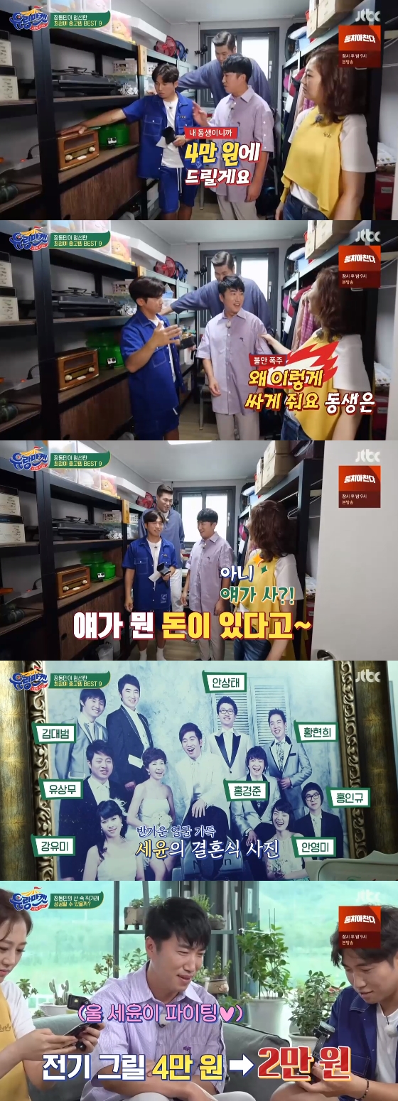 이에 서장훈은 "친한 동생이라고 잘해준다"며 질투하는 모습을 보였다. 유세윤은 장동민과 하이파이브를 하며 "나 1등하면 금 줘"라고 신나했다. 장동민은 이후에도 스피커를 파격적인 가격으로 내놓아 장윤정의 분노를 샀다. 장윤정은 "왜 이렇게 싸게 주냐 동생은"이라며 소리를 질러 불만을 표했다.