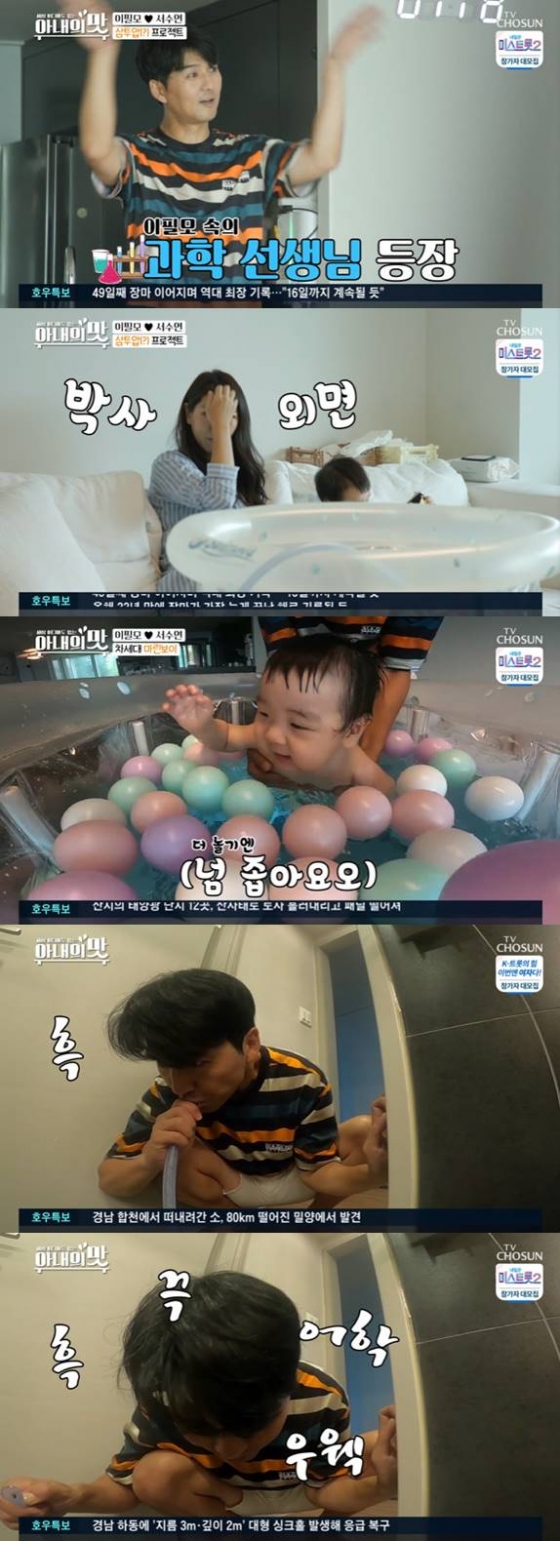 이를 안쓰럽게 보던 서수연은 호스를 자르고 싱크대에 물을 버리자고 했지만 이필모는 이마저 어려워해 웃음을 자아냈다.