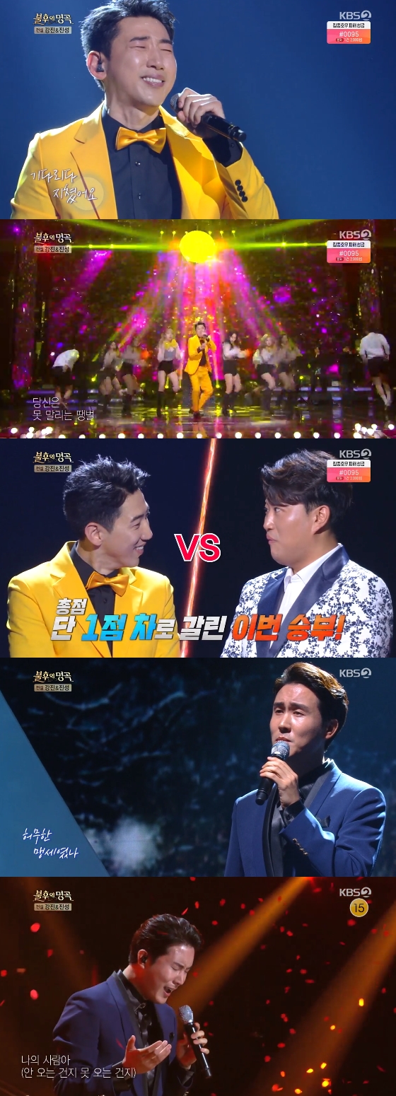 15일 오후 방송된 KBS 2TV 예능프로그램 '불후의 명곡'에서는 박구윤, 김호중, 영기, 신유, 신인선, 박서진이 출연해 전설 강진과 진성의 노래로 꾸미는 새로운 무대가 그려졌다.