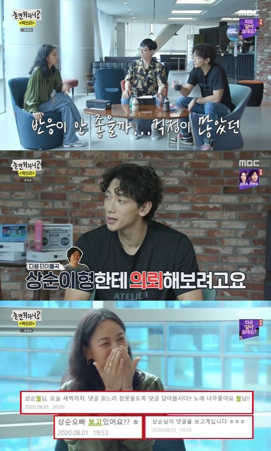 비는 "다음 타이틀 곡을 이상순 형에게 부탁할까 생각 중이다"라고 말했다, 이효리는 "어제도 이상순이 누워서 댓글을 읽고 있는 걸 봤다"고 말해 웃음을 안겼다.