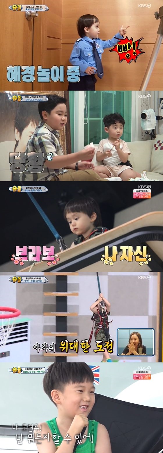 16일 방송된 KBS 2TV 예능프로그램 '슈퍼맨이 돌아왔다'에서는 해경 홍보대사가 된 윌벤져스와 홍잠언을 만난 박하남매, 그리고 신도로 여행을 떠난 도플갱어 남매의 모습이 그려졌다.