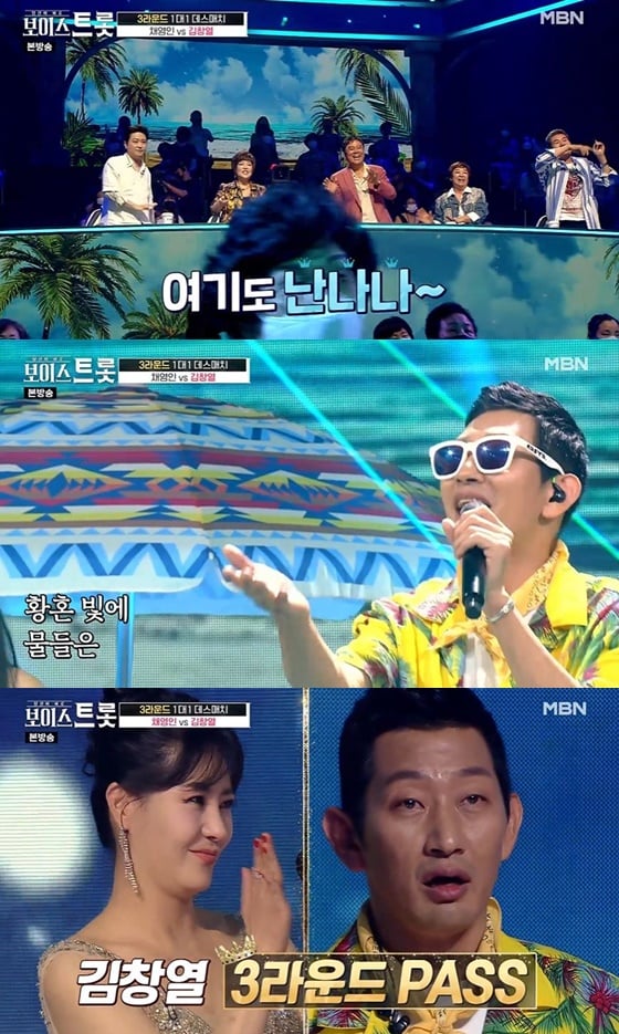 '보이스트롯'에서 김창렬이 채영인을 제치고 4라운드 진출에 성공했다.