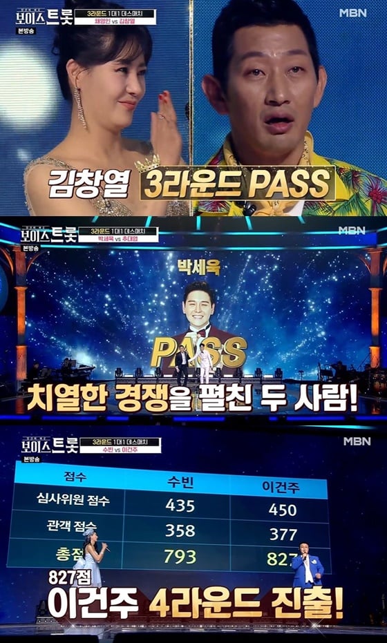 21일 오후 방송된 MBN 예능 프로그램 '보이스트롯'에서는 1대1 데스매치로 3라운드 우승자가 결정됐다.