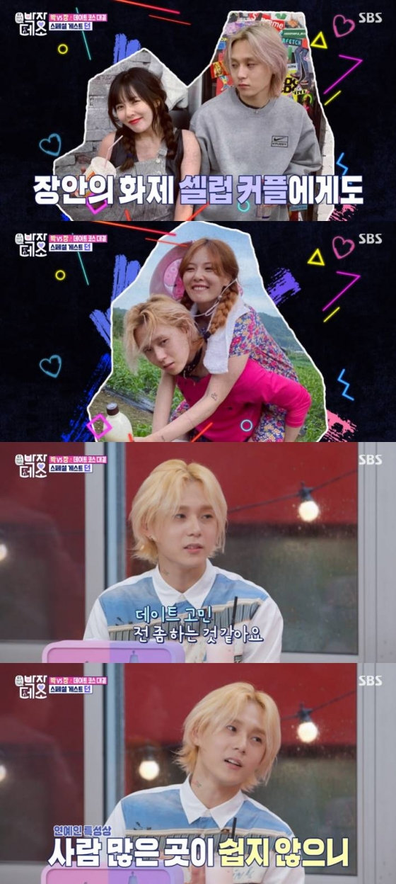 이후 현아와 데이트 코스 고민이 있냐는 질문이 나오자 던은 "고민이 있다. 사람들 많은 곳을 못 간다. 기념일에 나는 재미있게 해주고 싶은데 뭘 해야하나 고민했다"고 답했다.