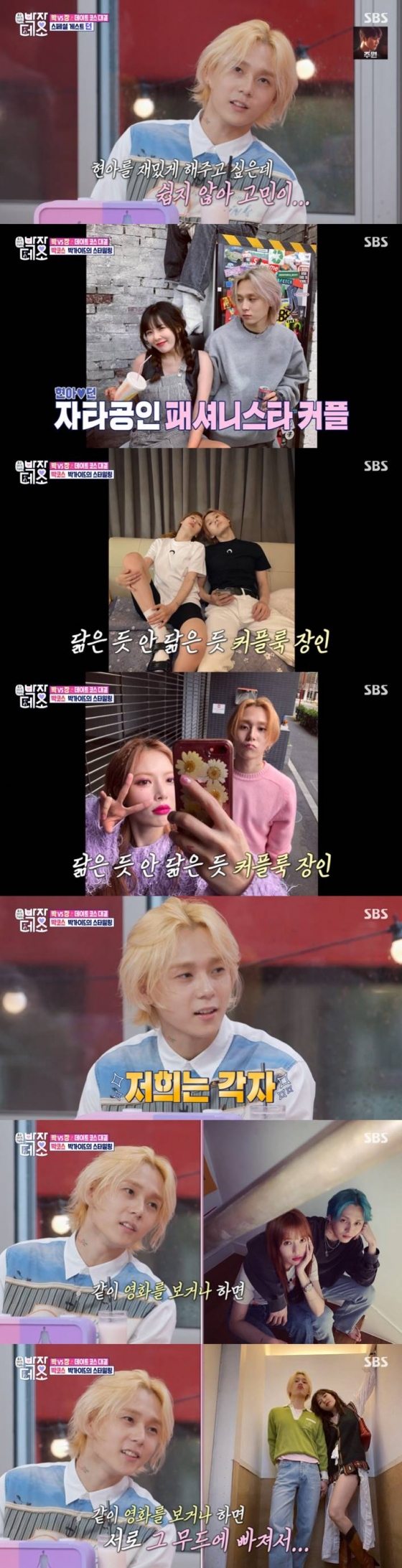 자타공인 패셔니스타 커플 현아와 던은 서로 스타일링을 해주는 편일까. 던은 "우리는 각자 스타일링 한다. 영화를 보면 그 영화의 무드에 빠져서 그렇게 입고 나오면 커플룩이 되는 경우가 되게 많다"고 밝혔다.